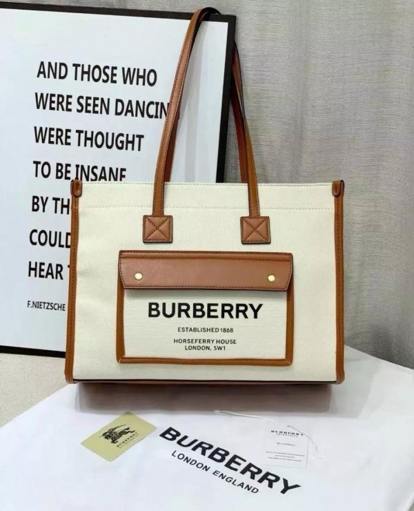 Burberry Horseferry London Tote Bag With Dust Bag (White_Brown-986)(BSB)