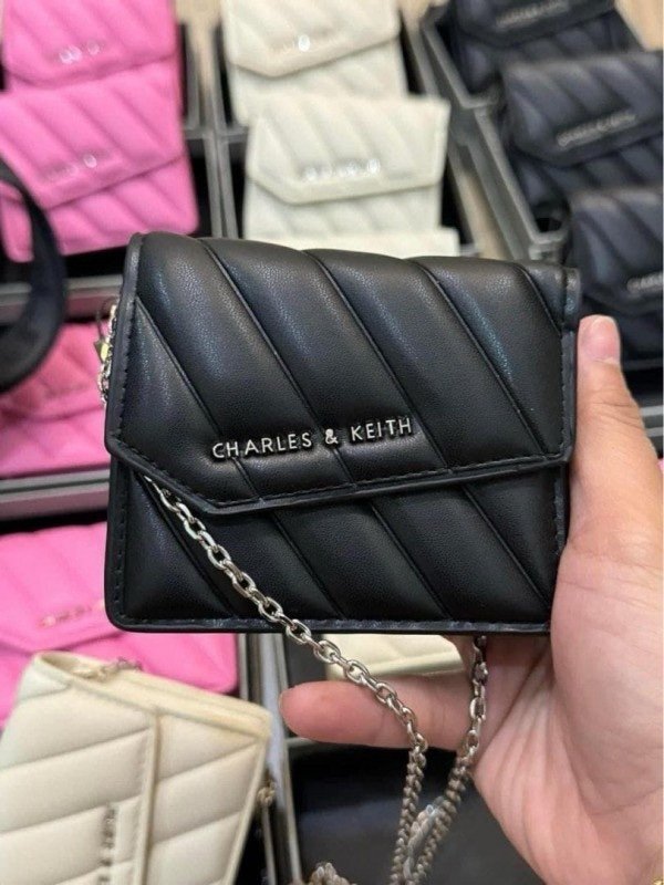 Charles & Keith Mini Asymmetric Flap Sling Bag With OG Box & Dust Bag (Black – 786)(BSB)
