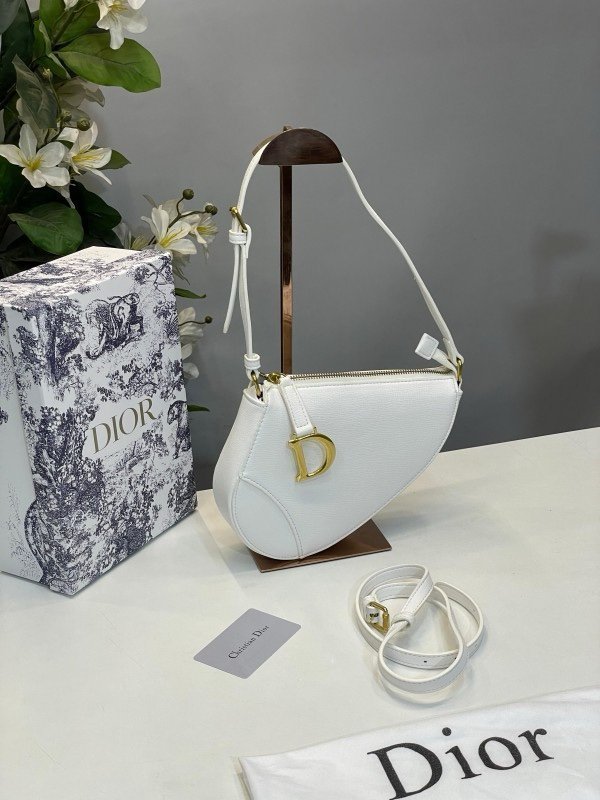 Christian Dior CD Saddle Rodeo Bag Pouch With OG Box & Dust Bag (379 White)