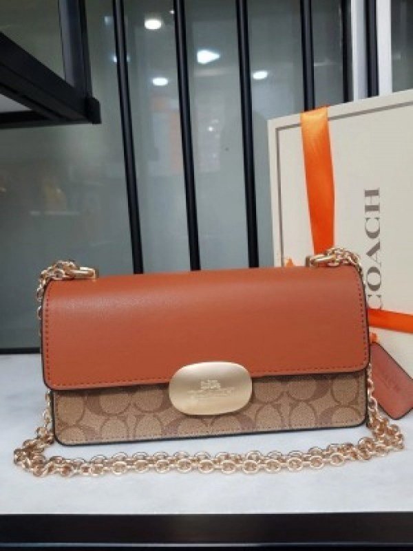 Coach Eliza Premium Crossbody Sling Bag With OG Magnetic Gift Box & Dust Bag (Tan Brown – 916)