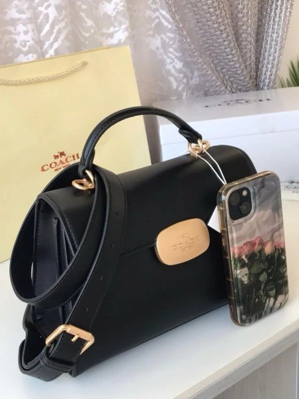 Coach Eliza Top Handle Premium Crossbody Bag With OG Magnetic Gift Box & Dust Bag (Black-911)(BSB)