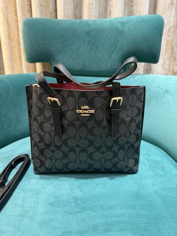 Coach Mollie Leather Tote Bag With Dust Bag & Shoulder Strap (C23021_Black_Black)(LB)