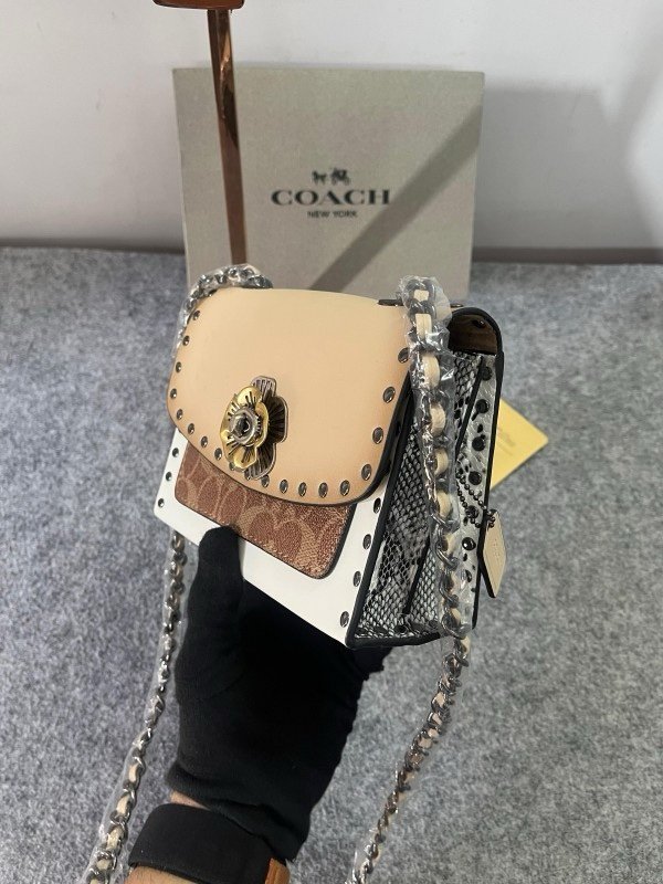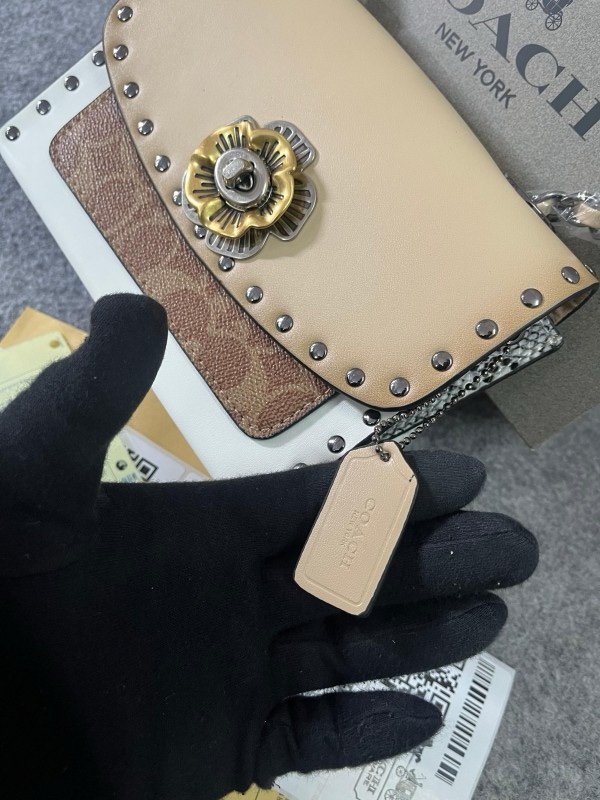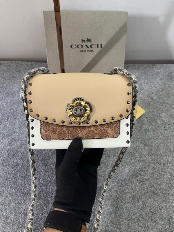 Coach Parker Studded Premium Shoulder Bag With OG Box & Dust Bag (Beige-28032)(LB)