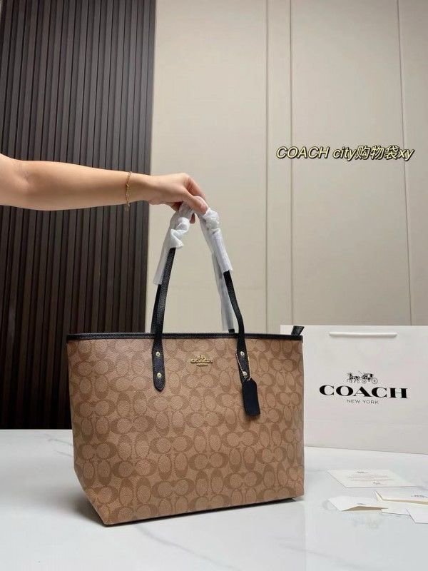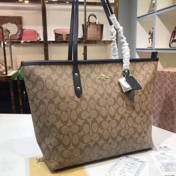 Coach Signature City Tote Bag With OG Box & Dust Bag (Beige_Black-1119)(BSB)