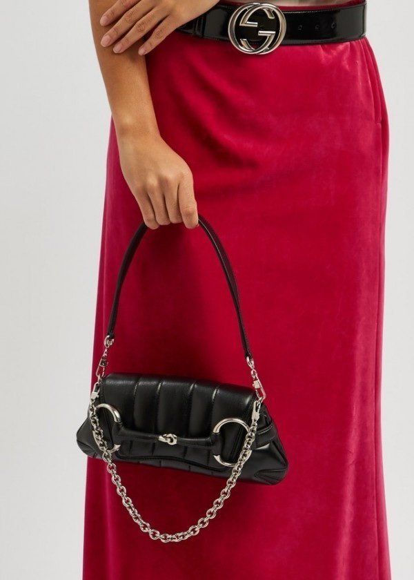 Gucci GG Horsebit Chain Shoulder Bag With OG Box & Dust Bag & 2 Belts & 1 Chain (Black-726)(BSB)