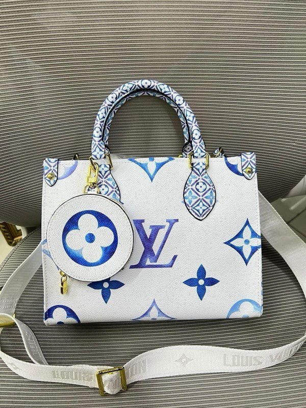 Louis Vuitton LV M22976 On The Go Pochette With OG Double Box & Dust Bag – Coin Pouch (White Blue – 620)(BSB)