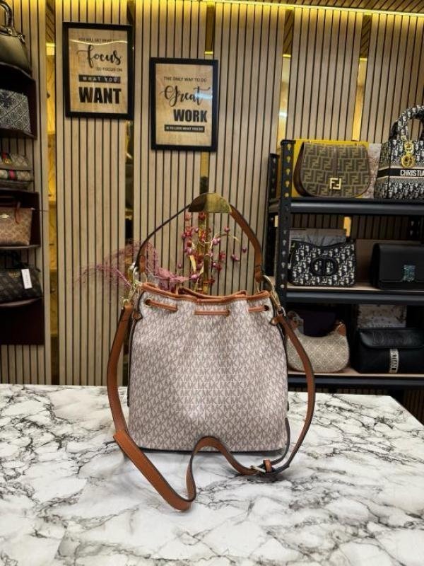Michael Kors Maeve Medium Bucket Bag With Dust Bag Beige Brown 100829(LB)