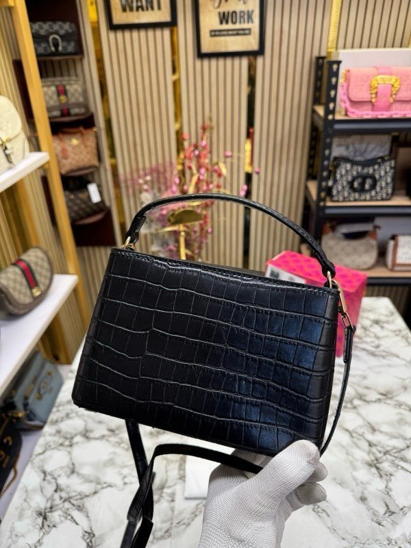 TOR Y BURCH BRITTEN CROCO HANDBAG CROCODILE PRINT WITH OG BOX AND DUST BAG AND SLING (BLACK) (S2)(MT)