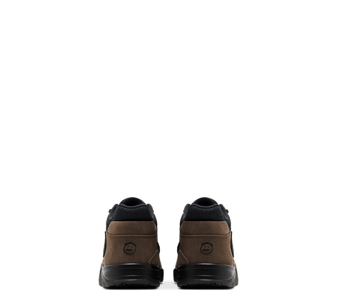 The Travis Scott x Jordan Jumpman Jack TR ‘Dark Mocha’ brings muted earth tones to Travis Scott’s debut signature shoe. La Flame’s signature reverse Swoosh, rendered in black suede, adorns the lateral side of an upper crafted from breathable black canvas with brown nubuck overlays. Tonal Jumpman branding decorates the tongue, while the Cactus Jack smiley logo appears on the back heel. ‘TS’ is embroidered on the adjustable forefoot strap. Underfoot, an oversized ‘Jack’ graphic is scrawled across the black rubber outsole, which wraps up the matching black foam midsole for added durability and traction.