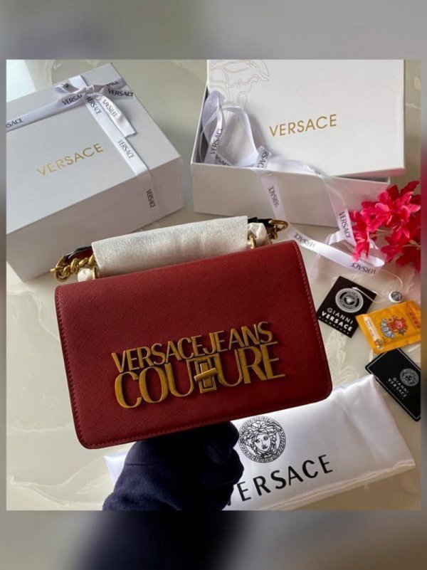 Versace Jeans Couture Saffiano Lock Crossbody Bag With OG Gift Box & Dust Bag (Red – VA029)(LB)